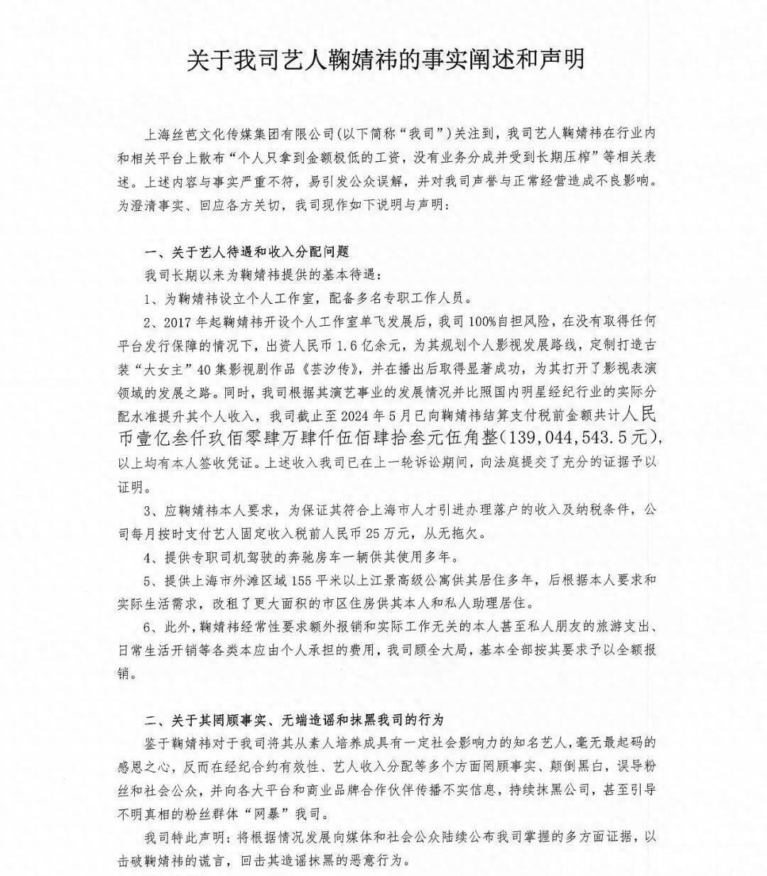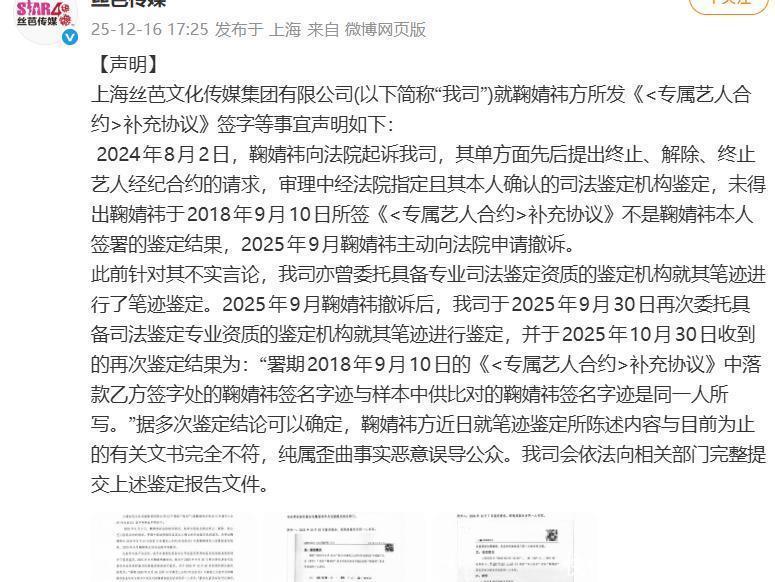 话说回来,最近娱乐圈这点事儿还挺能刺激神经的。12月16号,大早上上海丝芭传媒突然发微博,一口气甩出一摞账本,直接把“清算流水”端了出来。1.6个亿投资,139044543.5元工资签收,月入25万外加房车司机公寓伺候,说白了,就是:咱没亏待过鞠婧祎,有证有据,你要不要自己看看?可这事要追溯一下。前一天,也就是15号,鞠婧祎方面突然掉头,公开说她和丝芭的合约今年六月份就到期了,人家正儿八经独立了。而且她狠狠甩一句指控:公司不仅赖着她不撒手,还敢伪造合约签名、授权!一时间,粉丝炸了,网友两拨人开骂,“偶像被骗得好惨”和“公司冤枉受气”同时挂热搜。